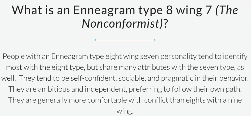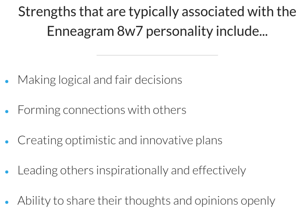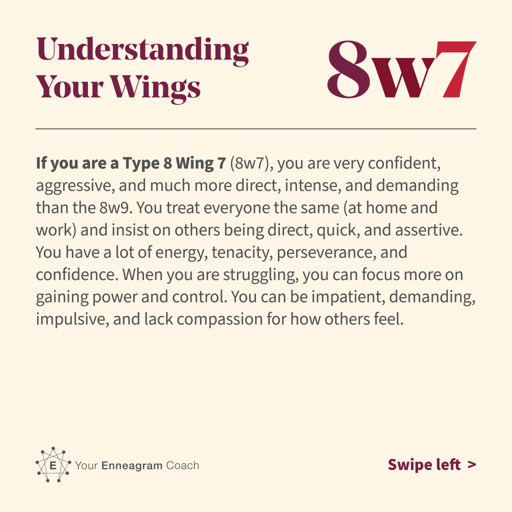 Since the 8wing7 is a combination of the Enneagram Type 8 and the Enneagram Type 7, let me start this section by describing them separately.