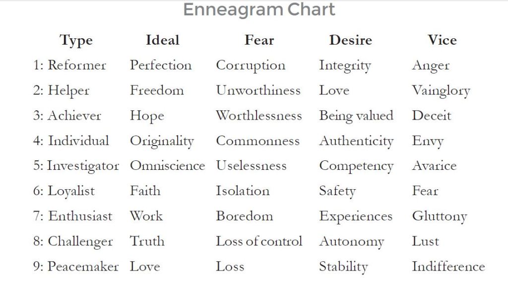 The best way to understand the 18 subtypes is to understand the 9 main types. Since every living person has a primary and a secondary type. Here is rundown of the 9 main types of the Personality Enneagram. With a: