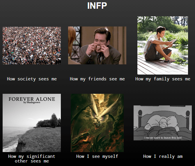 The INFP is most prone to naval-gazing out of any Myers Briggs type. It is not good at getting things done. Not at all. The INFP and the (somewhat similar) INTP has the highest scores of career dissatisfaction out of all 16 types. It has outright bad task execution, and is very idealistic.