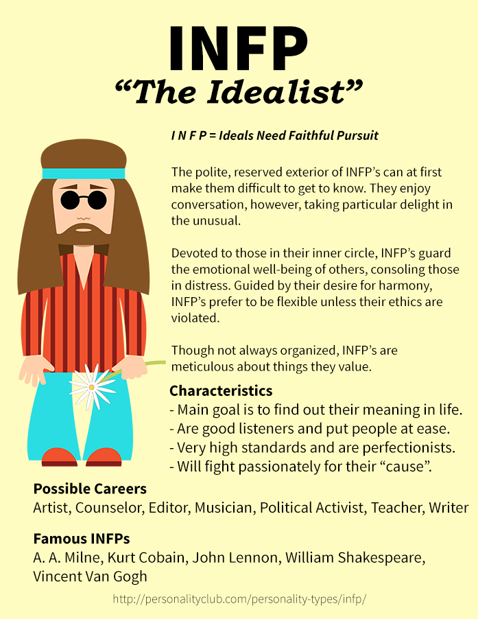 But also keep in mind that a lot of psychologists are INTPs. The INTP has a strong desire to absorb information, the INFP has a strong desire to experience culture and stimulate their spirituality.