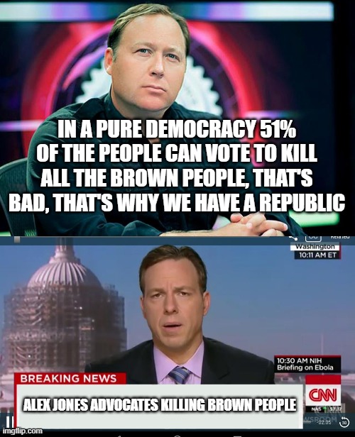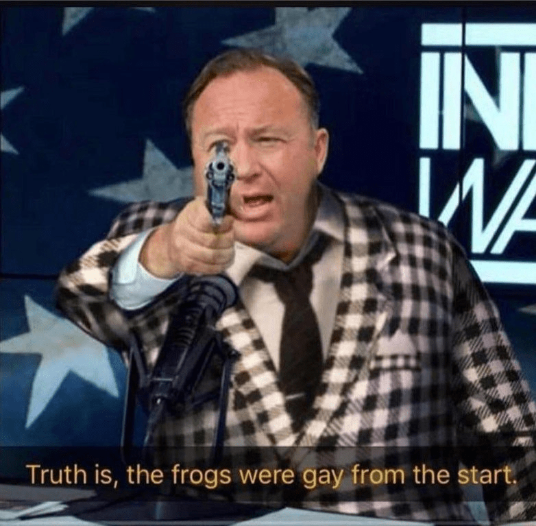 He is reckless, but also very entertaining. Alex jones was ahead the game on the Edward Snowden surveillance scandal. He said that 20+ years before it all came out. Alex Jones does not have a well developed secondary Perceiving function, and this makes him simplify reality a little too much to the point where it is not true anymore.