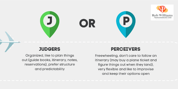 Judgers approach life in a structured, organized and carefully calibrated way, creating short- and long-term plans to help them achieve their goals. Schedules and “to-do” lists are comforting to them. They prefer knowing what they are getting into and feel frustrated in situations of ambiguity and change. People with this preference gain a sense of control by taking charge of their environment. They are self-disciplined and decisive, going for closure at the earliest possible opportunity to avoid stress.