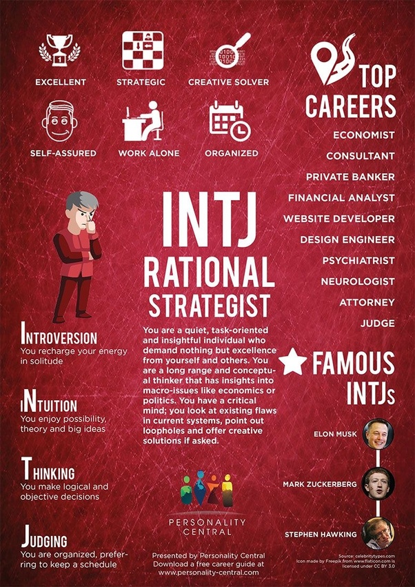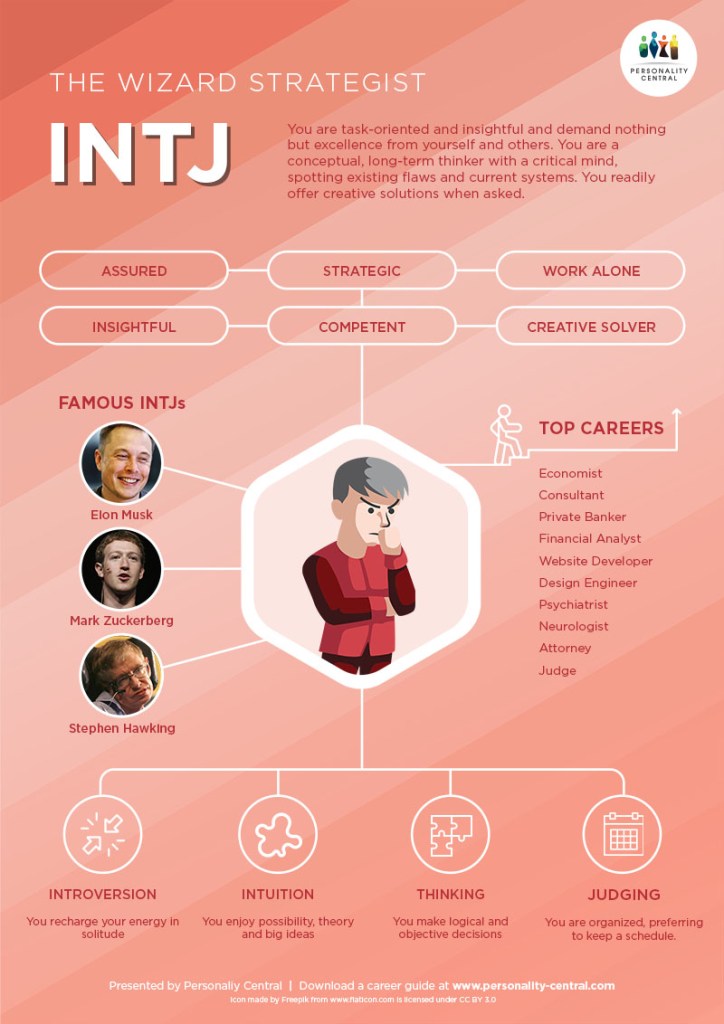 Marry an innocent geek with an ruthless businessman, and you get the INTJ. The INTJ is essentially an impatient, confident and assertive — nerd with street smarts.